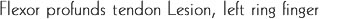 Esquema da via de acesso para o dedo e para o punho. Reparação tendinosa por alongamento do tendão flexor superficial do dedo anular.